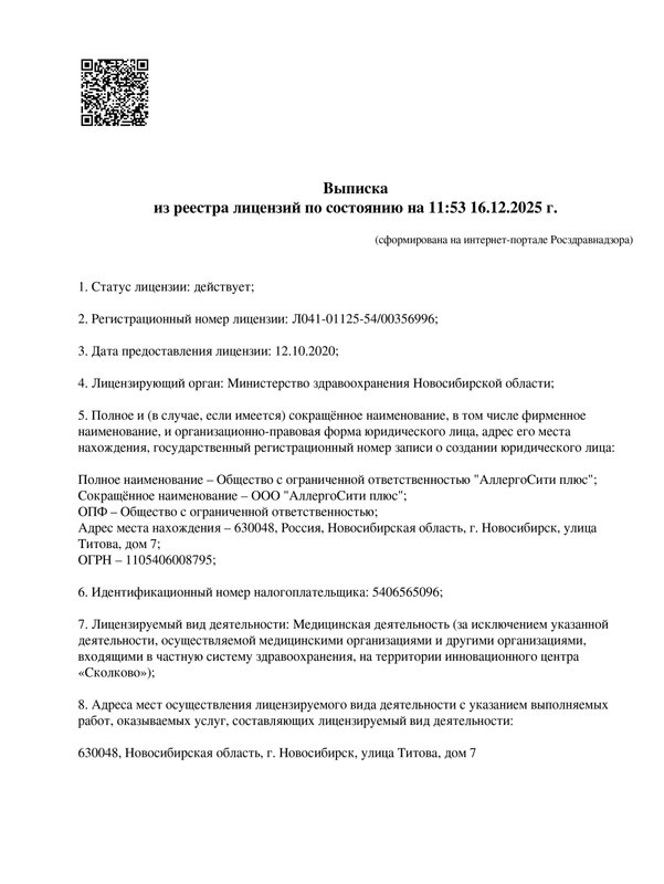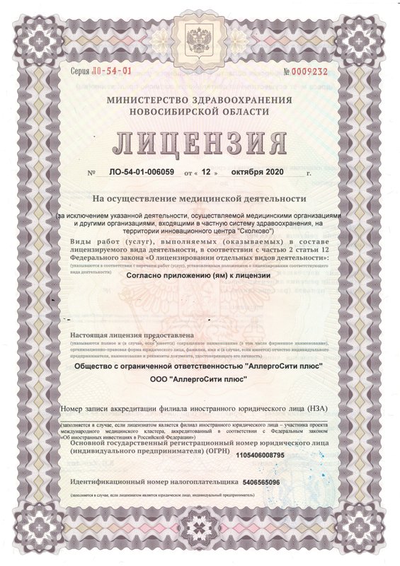 Медицинский центр АллергоСити - это учреждение широкого профиля, предлагающее специально подобранный комплекс процедур и услуг для каждого клиента. В клинике всё организовано с учетом максимального комфорта для посетителей. Техническое оснащение кабинетов позволяет провести диагностические исследования организма пациента для составления программы лечения и профилактических мероприятий. В клинике работают отделения общей терапии, кардиологии, ревматологии, гастроэнтерологии, пульмонологии, аллергологии, иммунологии, нефрологии, неврологии, эндокринологии, дерматологии, урологии, гинекологии, онкологии, оториноларингологии, педиатрии. Наши врачи имеют соответствующие знания и с пониманием отнесутся к вашим проблемам. Доверяя свое лечение нам, вы можете быть уверены в результате.